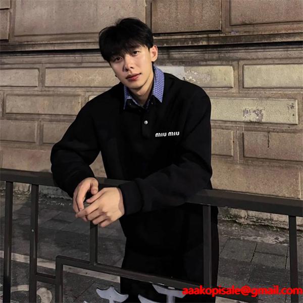 Miu Miu 偽物 トレーナー ロゴ刺繍 シンプル カジュアル ブラック おしゃれ メンズ ミュウミュウ胸元に控えめなロゴ刺繍をあしらったミニマルデザインのMiu Miu コピー トレーナーは、ゆったりとしたシルエットが魅力の高品質N級品で、上品な抜け感を演出します。ミュウミュウ 偽物 通販の中でも人気のスーパー コピー 激安モデルで、優良素材による柔らかな着心地を楽しめます。