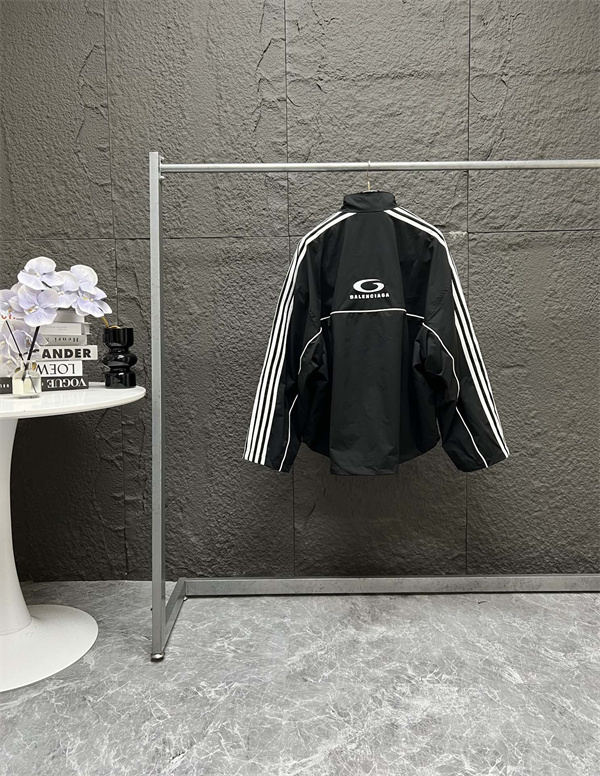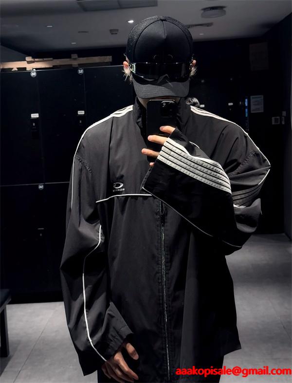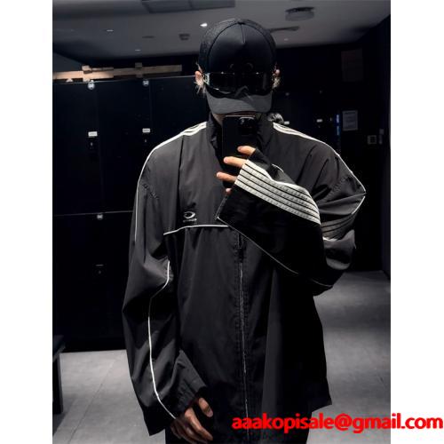 > メンズファッション > セットアップ > BALENCIAGA コピー トラックジャケット ライン スポーティースタイル アウター ジップアップ バレンシアガトラックジャケットは、肩から袖にかけて施されたホワイトラインがスタイリッシュな印象を与える高品質スーパー コピー商品。BALENCIAGA コピー トラックジャケットとして軽量ナイロン素材で通気性も抜群、ストリートやジムなど幅広いシーンで着用可能です。ゆったりとしたオーバーサイズシルエットでトレンド感も満点。N級品としてディテールも精巧に再現され、激安通販でも大人気のアイテムです。
