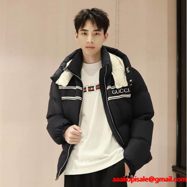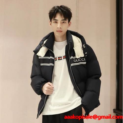 > メンズファッション > ダウンジャケット > GUCCI コピー フード付き スポーティー ストリート ダウンジャケット 精巧 激安 アウター グッチダウンジャケットは、スポーティーかつ都会的な印象を与える精巧なスーパーコピー商品です。GUCCI コピー ダウンジャケットとして胸元のGUCCIロゴとホワイトストライプがアクセントとなり、存在感のあるデザインに仕上がっています。軽量で動きやすく、保温性にも優れた万能アウター。激安で通販入手できるグッチ 偽物の中でも特に人気が高く、上質なスタイルを気軽に楽しめる一着です。洗練されたディテールが魅力の高再現モデルです。