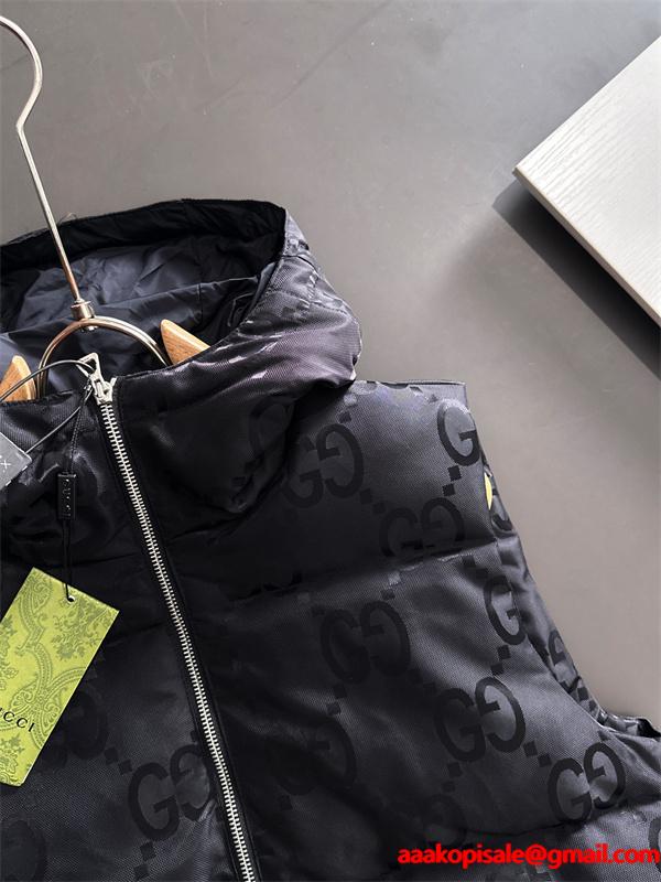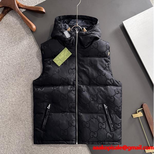 > メンズファッション > ダウンジャケット > グッチ スーパーコピー GG柄 フード付き ブラック ダウンベスト 軽量 ファッション アウター GUCCIダウンベストは、GG柄を全面にあしらったデザインが印象的なアイテムです。GUCCI コピー ダウンベストとして軽くて動きやすく、防寒性にも優れています。フード付き仕様で機能性が高く、重ね着にも最適です。スーパーコピーとしての完成度が高く、縫製や素材選びにもこだわりが感じられます。激安価格で通販購入できる偽物ながら、上質な雰囲気をしっかり再現。グッチらしいデザインを気軽に楽しめる定番人気モデルです。