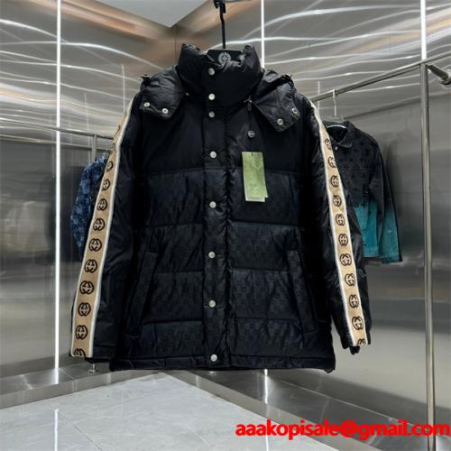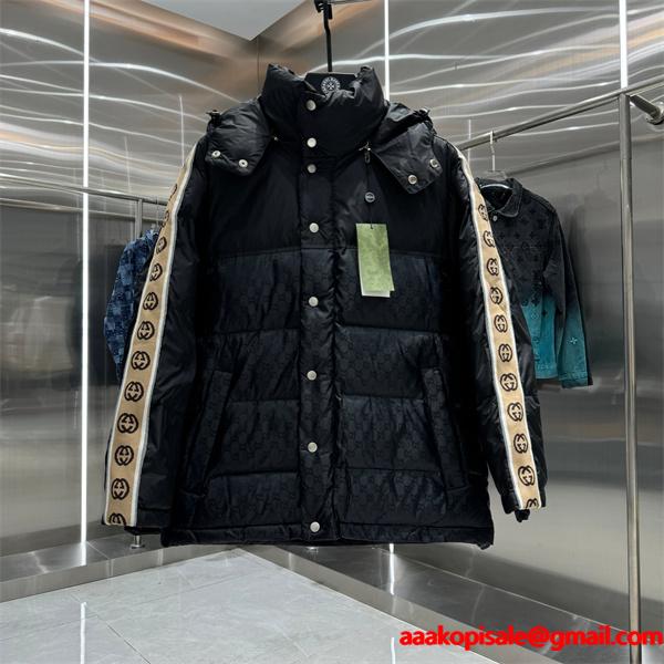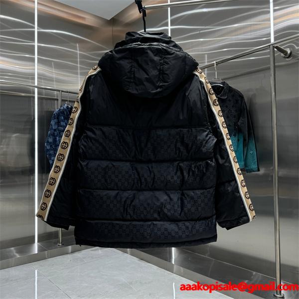 > メンズファッション > ダウンジャケット > グッチ 偽物 サイドGGテープ フード付き ブラック ダウンジャケット ロゴデザイン 防寒 アウターGUCCIダウンジャケットは、袖にGGロゴテープを配した印象的なデザインが魅力です。GUCCI コピー ダウンジャケットとして全体にGG柄をあしらい、ブランドらしい雰囲気をしっかり表現しています。軽量で保温性が高く、寒い季節でも快適に着られます。スーパーコピーとして細部の再現度が高く、縫製や素材の質も優れています。激安価格で通販購入できる偽物ながら、本物と見間違うほどの完成度を誇る人気のグッチ コピーアウターです。