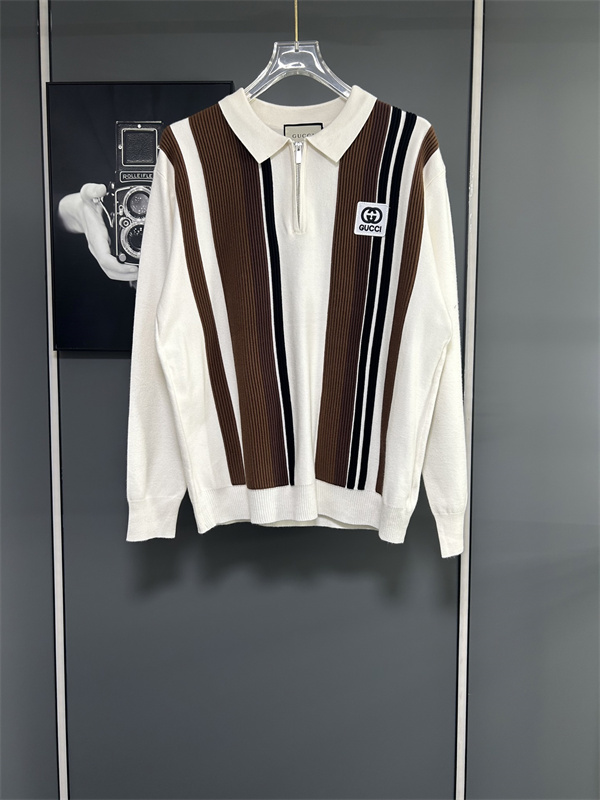 > メンズファッション > ジャケットパーカセーター > グッチ コピー ストライプ ジップアップ 襟付き ニット トップス ブラウン アイボリー GUCCIニット トップスは、フロントに施されたストライプデザインとハーフジップ仕様が特徴のエレガントな一着です。GUCCI コピー ニット トップスとしてブラウンとアイボリーのコントラストが美しく、程よいヴィンテージ感を演出します。柔らかく伸縮性のある素材で着心地も抜群。スーパーコピーとして細部まで精巧に作られており、品質面でも満足度の高い仕上がりです。通販で激安価格ながら、高級感と上品さを兼ね備えたグッチ 偽物セーターです。