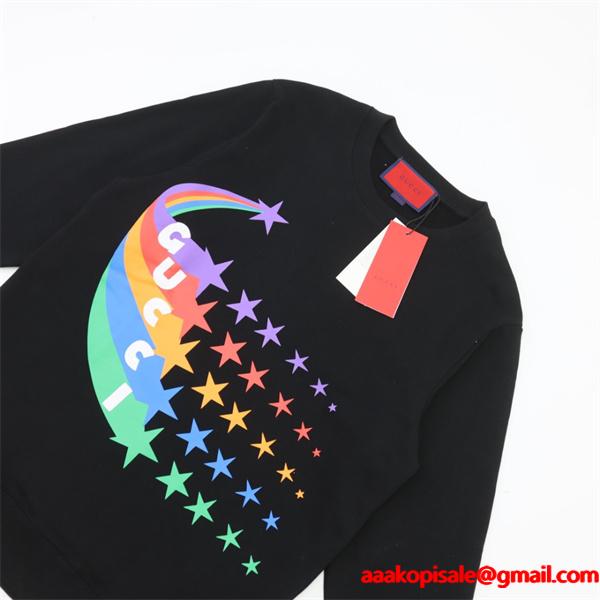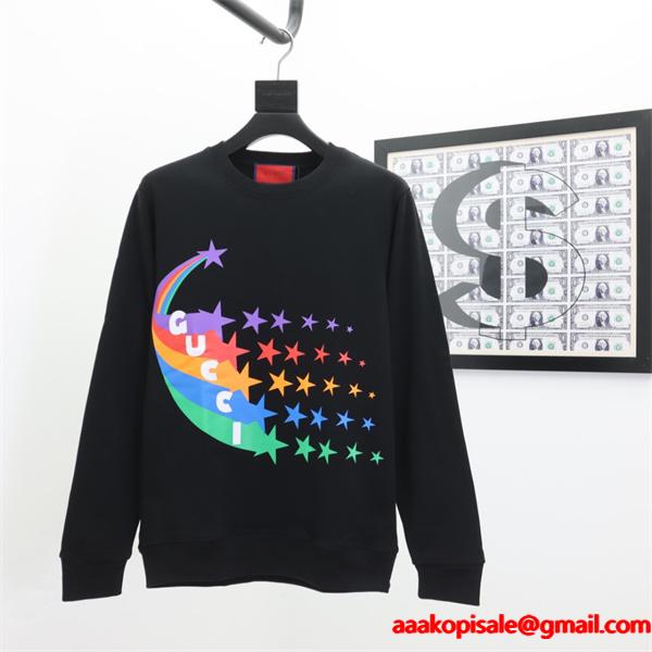 > メンズファッション > ジャケットパーカセーター > グッチ 偽物 スターシューティング レインボー スウェット トレーナー ポップ 当店イチオシ GUCCIパーカーは、カラフルな星と流れ星モチーフが特徴のデザインです。GUCCI コピー パーカーとしてGUCCIの遊び心あふれるスタイルを再現し、グッチらしい鮮やかな個性を表現。コピー品ながら発色やプリントの精度は非常に高品質で、柔らかな生地感が魅力です。通販でも激安で入手でき、優良なN級品として多くの支持を集めています。スーパー コピーの完成度が高く、偽物とは思えないほどリアルな雰囲気。ファッション感度の高い人にもおすすめの一着です。