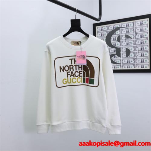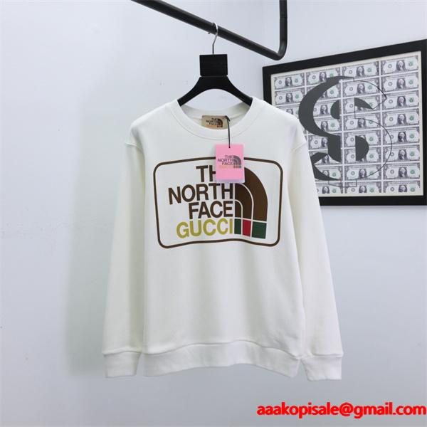 > メンズファッション > ジャケットパーカセーター > グッチ コピー ノースフェイスコラボ ロゴクルー スウェット トレーナー ホワイト モード系 GUCCIパーカーは、THE NORTH FACEとのコラボロゴを大胆に配置したホワイトデザインです。GUCCI コピー パーカーとしてGUCCIとノースフェイスの融合が魅力で、グッチらしい上品さとアウトドアの要素を兼ね備えています。コピー品ながら質感は高品質で、柔らかく肌触りの良い素材を使用。通販では激安価格で販売され、優良なN級品として人気急上昇中。スーパー コピーの再現度が高く、偽物とは思えない完成度を誇る一着です。