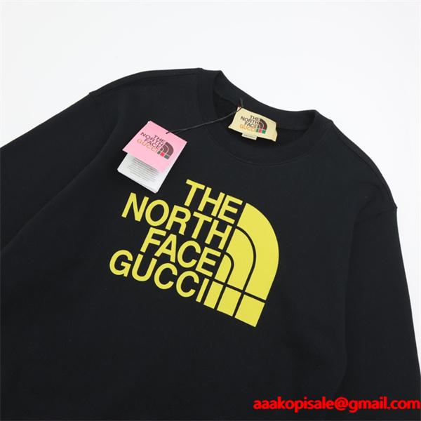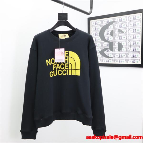 > メンズファッション > ジャケットパーカセーター > GUCCI 偽物 ノースフェイスコラボ イエローロゴ スウェット トレーナー ブラック プレミアム グッチパーカーは、THE NORTH FACEとのダブルネームをイエローで仕上げたデザインです。GUCCI コピー パーカーとしてGUCCIのブランドロゴが際立ち、グッチらしいラグジュアリーな印象を演出します。コピー品ながら素材は高品質で、肌触りが良く保温性も抜群。通販では激安価格で購入可能で、優良なN級品として人気が高まっています。スーパー コピーの仕上がりが精巧で、偽物とは思えない完成度。タウンユースにもアウトドアにも活躍する万能パーカーです。
