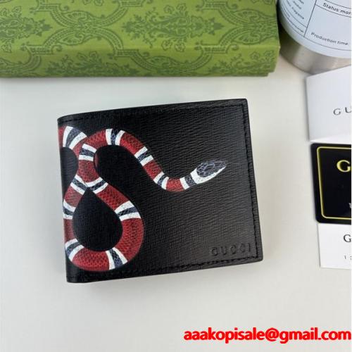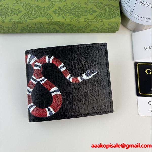 > 財布 メンズ > その他 メンズ財布 > グッチ 偽物 二つ折り財布 キングスネークデザイン ブラックレザー シンプル メンズ人気 GUCCI印象的なキングスネークデザインが施された高品質なN級品が、このGUCCI コピー 二つ折り財布です。ブラックレザーに映える赤と白の蛇モチーフが大胆で、グッチ 偽物 財布の中でも個性的な存在感を放ちます。スーパーコピーながら素材の質感やステッチの美しさが本物に劣らず、上質な仕上がりです。耐久性にも優れ、日常使いはもちろんプレゼントにも最適。激安通販でも手に入る優良アイテムとして、スタイリッシュな男性におすすめです。