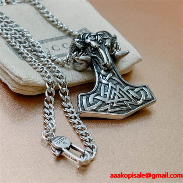 > アクセサリー > ネックレス > グッチ コピー ネックレス シルバー トールハンマー モチーフ 重厚 個性 高品質 新登場 GUCCIシルバー素材を使用し、重厚感のあるトールハンマーモチーフが存在感を放つデザインのアイテムが、このGUCCI コピー ネックレスです。グッチ 偽物 アクセサリーの中でも個性的なスーパーコピーアイテムで、N級品として優良な品質と高精度な仕上がりを実現しています。激安通販でも本物のような質感を楽しめる高品質アクセサリーで、力強さとスタイルを兼ね備えた逸品です。メンズにも最適です。