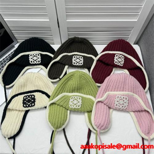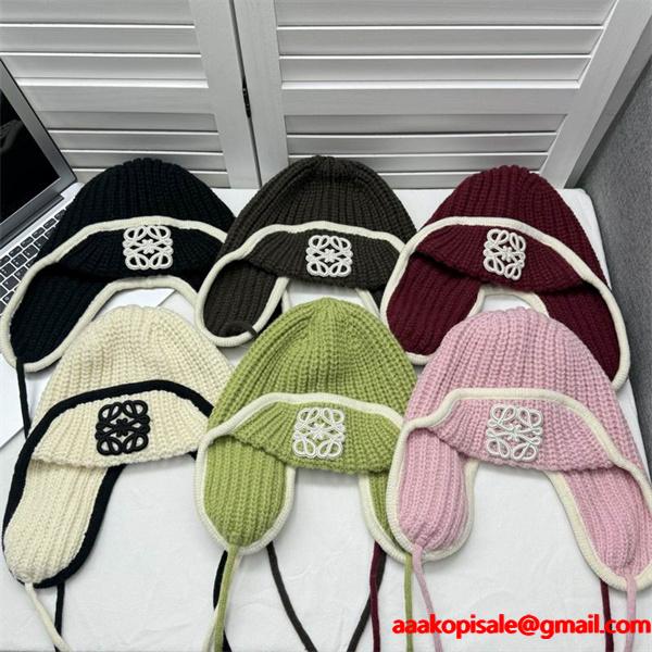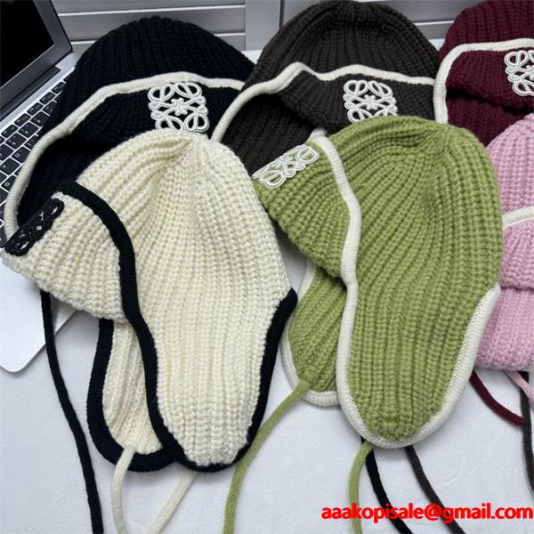 > ファッション小物 > 帽子、マフラー > ロエベ スーパーコピー アナグラム ロゴ デザイン ボリューム ニット イヤーフラップ ウール ブレンド ニット帽 LOEWE立体的な編み地が特徴的なイヤーフラップデザインで、優れた保温性と可愛らしいシルエットを兼ね備えています。LOEWE コピー ニット帽は、ブランドを象徴するアナグラム刺繍が上品に施され、冬の装いにエレガンスを添えます。耳当て部分のリボンで結ぶことでフィット感を調整でき、寒い季節にぴったりのデザイン。ブラック、ホワイト、グリーン、ブラウン、ピンクなど多彩な色展開で、ファッション性と実用性を両立させたロエベらしい逸品です。