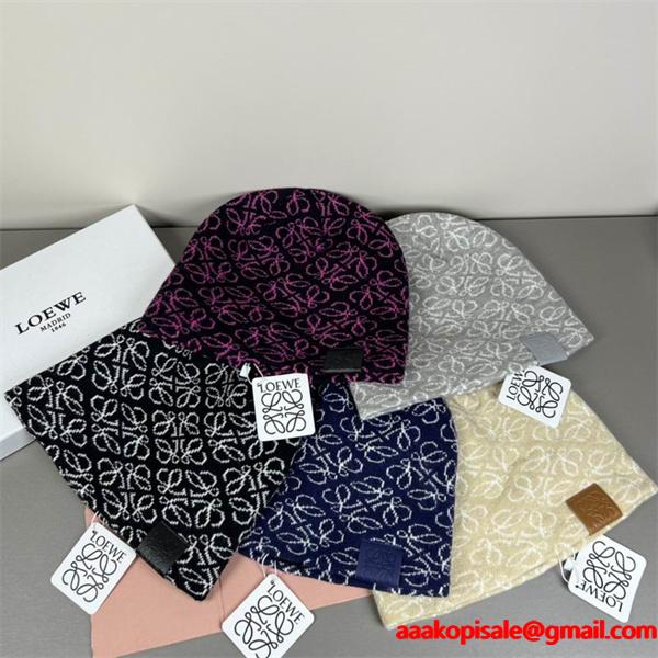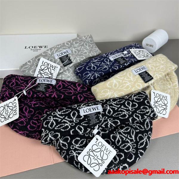 > ファッション小物 > 帽子、マフラー > LOEWE 偽物 アナグラム ジャカード パターン ウール ブレンド クラシック ベレー スタイリッシュ ニット帽 ロエベブランドを象徴するアナグラムパターンを全体にあしらった、クラシックかつモダンなデザインが魅力です。LOEWE コピー ニット帽は、上質なウール混素材を使用し、柔らかく軽やかな着け心地と高い保温性を実現。どの角度から見ても美しい立体フォルムで、エレガントな印象を与えます。ブラック、グレー、ネイビー、アイボリー、パープルなどのカラーが展開され、上品な大人のスタイルにぴったり。ロエベの洗練された個性を感じるアイテムです。