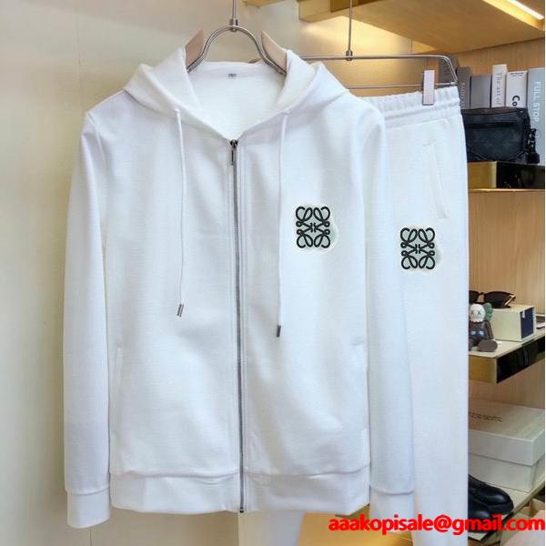 > メンズファッション > セットアップ > 清潔感と上品さを兼ね備えた LOEWE ロエベ コピー セットアップ 2025秋冬人気上昇中柔らかなホワイトが映えるロエベのジップフーディーセットアップ。シンプルながら胸元のアナグラム刺繍が高級感を引き立て、洗練された大人のスタイルを完成させます。LOEWE コピー セットアップは、スーパー コピー 高品質素材を使用した優良モデルで、滑らかな肌触りと快適なフィット感が魅力。ロエベ 偽物とは思えないN級品クオリティで、激安通販でも高評価。2025秋冬シーズン、街でもリラックスシーンでも輝く一着です。