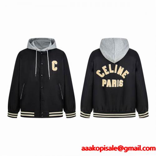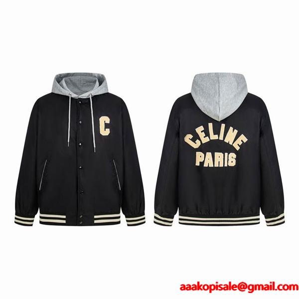 > メンズファッション > ジャケットパーカセーター > 都会的なムード漂う 2025秋冬新作 フーディ付き ブラック スタジャン セリーヌ CELINE スーパーコピーモード感とスポーティーさを融合したトレンドスタイル。CELINE コピー ジャケットは、グレーフーディを組み合わせた立体的デザインが特徴の高品質N級品。背面の「CELINE PARIS」ロゴが存在感を放ち、スーパー コピー仕様の優良仕立てで快適な着心地を実現。セリーヌ 偽物 アウターとは思えない上質感で、軽やかに羽織れる万能アイテム。激安通販でも人気上昇中のCELINE コピー ジャケットは、カジュアルながらも洗練された印象を与えます。