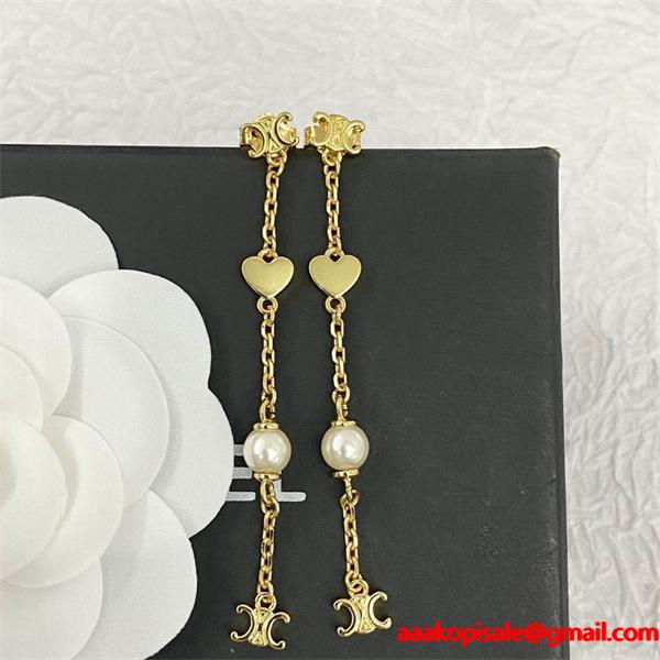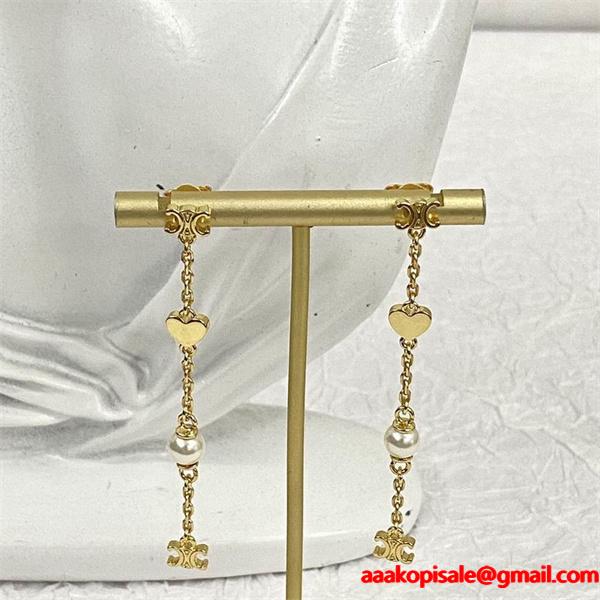 > アクセサリー > 可憐でロマンティックな セリーヌ CELINE コピー 2025秋冬新作 ハート&パール チェーン ピアスゴールドチェーンにハートとパールを組み合わせた女性らしいデザイン。CELINE コピー ピアス は、トリオンフモチーフをポイントにした高品質N級品。スーパー コピー仕様の優良仕上げで、セリーヌ 偽物 アクセサリーとは思えない繊細なディテールを実現。軽やかに揺れるチェーンが耳元を華やかに演出し、どんなコーデにもマッチします。激安通販でも人気のCELINE コピー ピアスは、上品さと可愛らしさを両立した秋冬の新定番です。