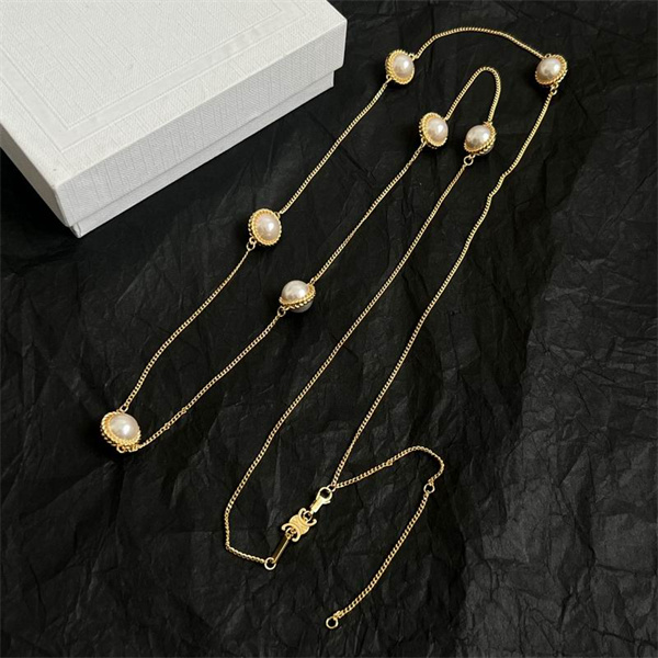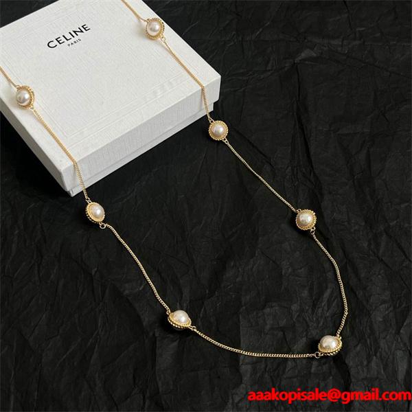 > アクセサリー > セリーヌ CELINE 偽物 2025秋冬 パール&ゴールド チェーンチョーカー 寒暖シーズンに最適な一枚セリーヌ CELINE の上品な美しさを感じさせるパール&ゴールドチェーンチョーカー。CELINE コピー ネックレスは、繊細なチェーンに柔らかな光沢のパールを組み合わせ、デコルテを華やかに飾ります。首元にフィットするモダンなショートデザインは2025秋冬のトレンドとも相性が良く、ニットやジャケットスタイルにもよく映えるバランス。軽やかなつけ心地と洗練された存在感を持ち、デイリーからパーティーまで幅広く活躍するエレガントなアクセサリーです。