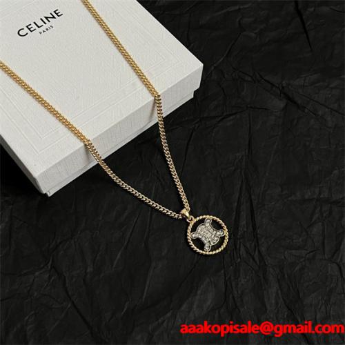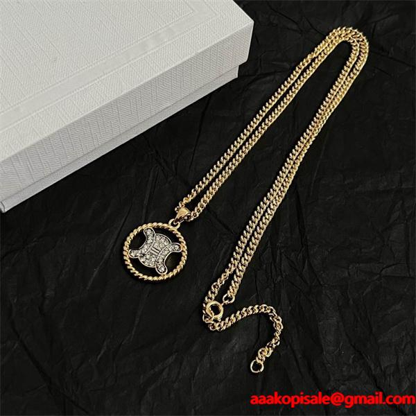 > アクセサリー > 2025秋冬 トリオンフ ゴールドチェーン ネックレス 秋冬スタイルおすすめ セリーヌ CELINE コピーセリーヌ CELINE の象徴であるトリオンフモチーフを主役にしたゴールドチェーンネックレス。CELINE コピー ネックレスは、艶やかなメタルが首元で上品に光り、2025秋冬のクラシックムードやモードなファッションとも自然に調和します。程よい存在感のあるチャームと細身のチェーンが洗練されたバランスを生み、重ね付けや単体でも美しく映えるデザイン。シンプルなトップスやワンピースに合わせるだけで、スタイル全体を格上げするアイテムです。