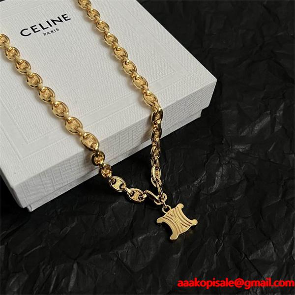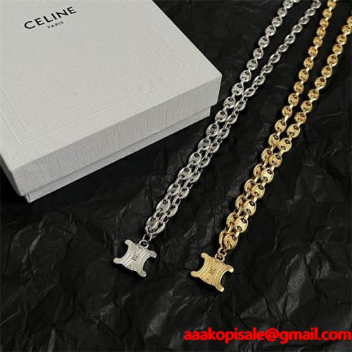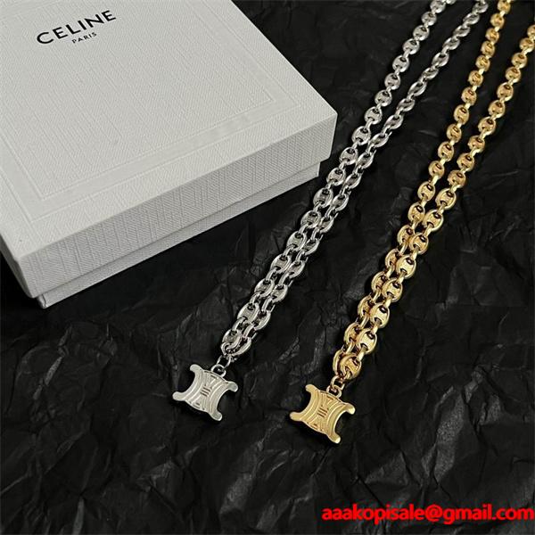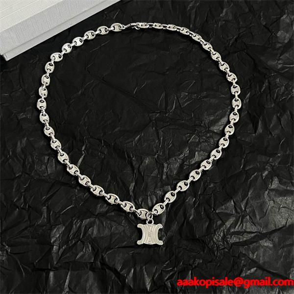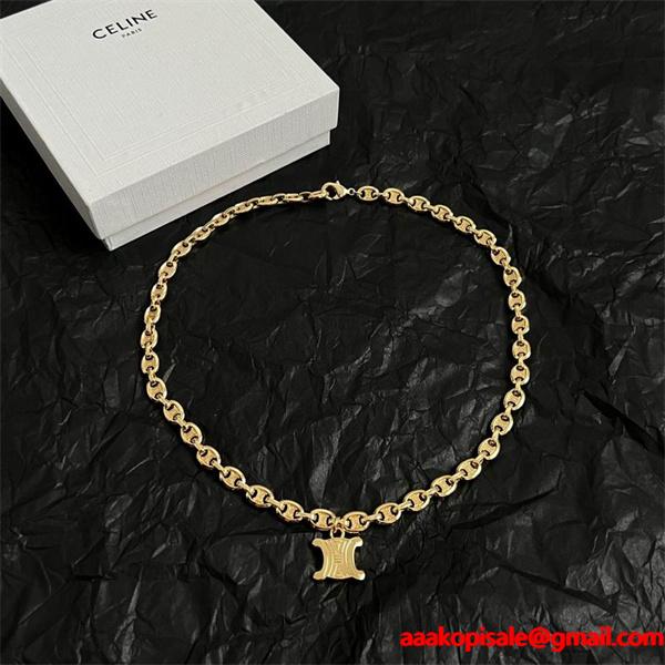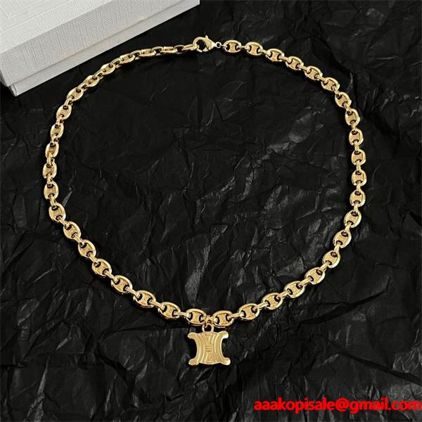 > アクセサリー > CELINE 偽物 2025冬 トリオンフモチーフ チェーンリンク セリーヌ ネックレス 実用性抜群 セリーヌ CELINE のシグネチャーであるトリオンフモチーフを際立たせたチェーンリンクネックレス。CELINE コピー ネックレスは、重厚感のあるメタルチェーンが2025冬のファッションにぴったりの存在感を放ちます。シルバーとゴールドの2カラー展開で、スタイルに合わせて選べるのも魅力。シンプルな装いにもアクセントを加え、都会的なムードを演出する上質アクセサリー。秋冬のコーディネートに洗練された輝きを添えます。