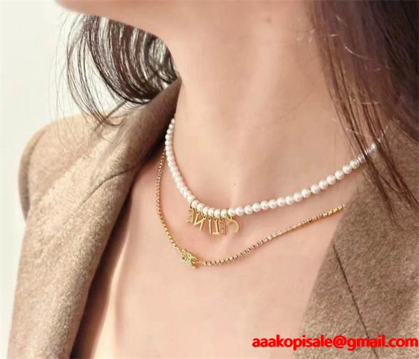 > アクセサリー > 2025秋冬 パール&ゴールドロゴエレガントチョーカーネックレス CELINE セリーヌ 偽物CELINE(セリーヌ)が持つクラシックな美しさを再解釈した、2025秋冬注目のパール×ロゴチョーカー。CELINE コピー ネックレスは、首元に沿うように並ぶ上質なパールと、中央に輝くゴールドロゴモチーフが絶妙なバランスで配置され、洗練された存在感を放ちます。チョーカーならではのフィット感が顔周りをすっきり見せ、ハイネックニットやシャツスタイルにも相性抜群。上品さとトレンド感を兼ね備えたデザインで、普段使いから特別な日まで幅広く活躍します。