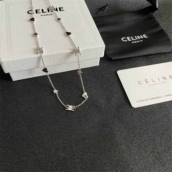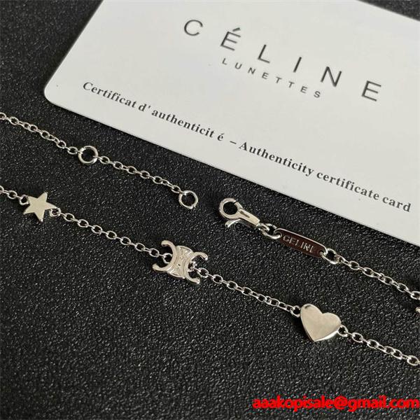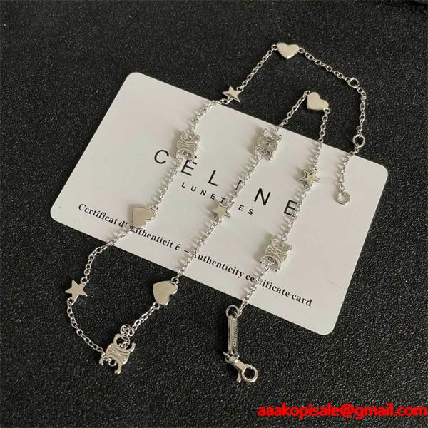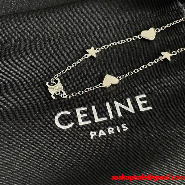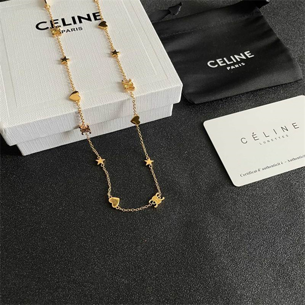 > アクセサリー > CELINE セリーヌ 偽物 2025秋冬 ハート&トリオンフモチーフ ゴールドチェーン ネックレスCELINE(セリーヌ)の愛らしさとエレガンスを融合した、2025秋冬注目のハート&トリオンフモチーフネックレス。CELINE コピー ネックレスは、ゴールドの華奢なチェーンに、ハート・トリオンフ・スターなどのチャームがバランスよく並び、動くたびに繊細に揺れて輝きを放ちます。甘くなりすぎない上品なデザインで、ニットやブラウス、ワンピースにも自然に馴染みます。デイリーにも特別な日にも使える万能アイテムで、大人の女性の首元を可憐かつ洗練された印象に仕上げてくれるジュエリーです。