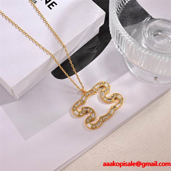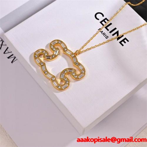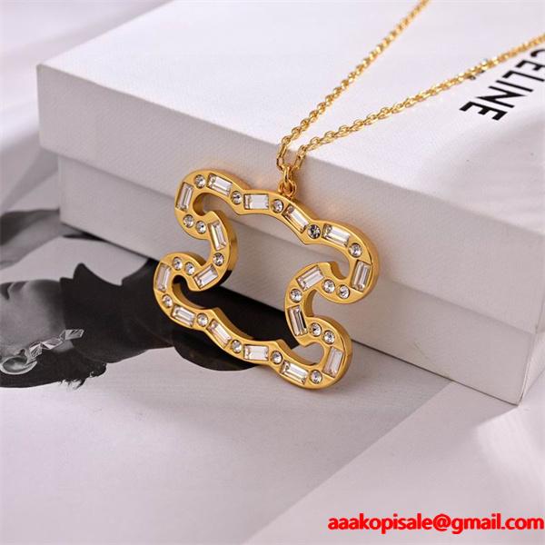> アクセサリー > クリスタル装飾トリオンフ ラグジュアリーチェーンネックレス CELINE セリーヌ 偽物 2025秋冬人気モデルセリーヌ CELINE の象徴的なトリオンフモチーフに、繊細なクリスタルを贅沢にあしらった2025秋冬のラグジュアリーネックレス。光が当たるたびに上品なきらめきを放ち。CELINE コピー ネックレスは、ゴールドのメタルチェーンは程よい太さで、首元を美しく引き立てながらも気品を損なわず、シンプルなニットやブラックドレスにも自然に映えるデザイン。