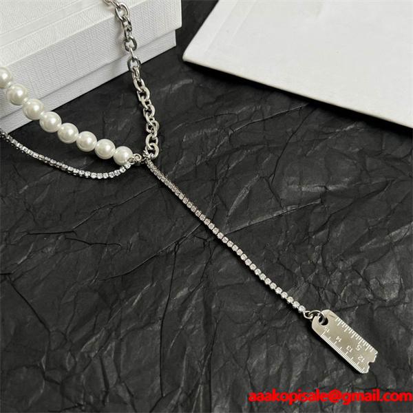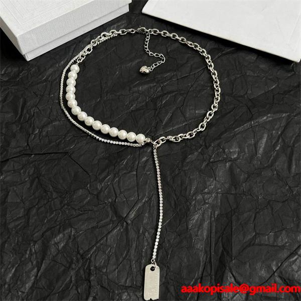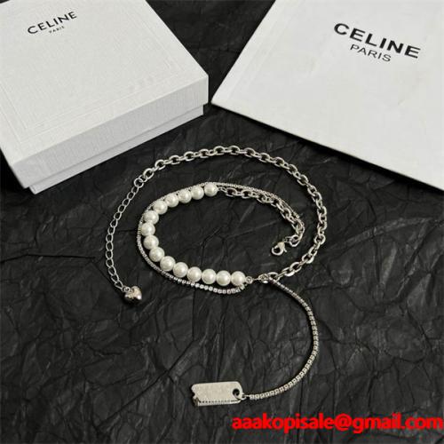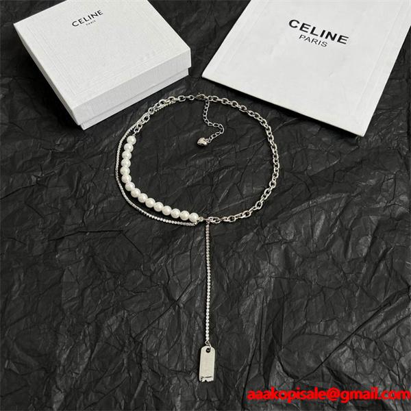 > アクセサリー > CELINE セリーヌ 偽物 パール&CELINEロゴ 2025秋冬モードチョーカーネックレスCELINE(セリーヌ)のエレガンスとモード感を融合させた、2025秋冬注目のパールチョーカー。CELINE コピー ネックレスは、艶やかなホワイトパールを連ね、中央にさりげなく輝くCELINEロゴモチーフを配置することで、上品さとブランドらしいアイコニックな存在感を両立させています。首元にフィットするチョーカータイプは、タートルネックやシャツの襟元とも相性が良く、端正で都会的な雰囲気を演出。