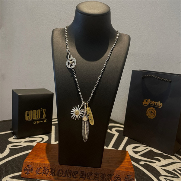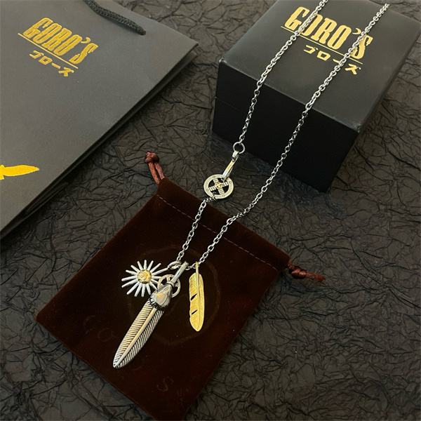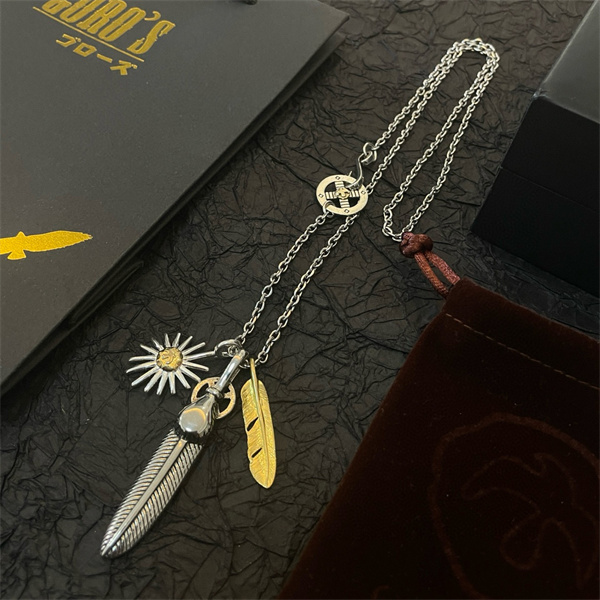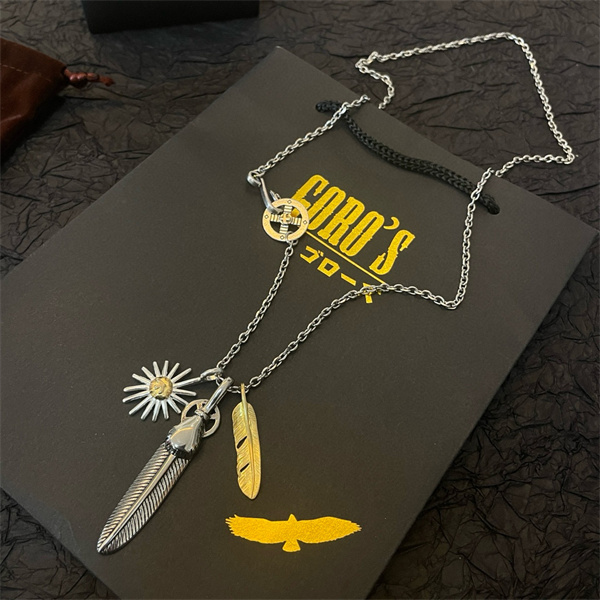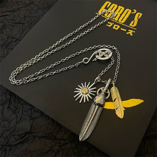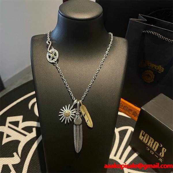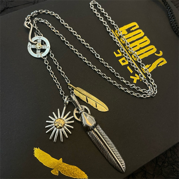 お洒落新作goro’sゴローズ フェザー ネックレス コピーシルバー×ゴールド 太陽メタル付き チェーン ユニセックス