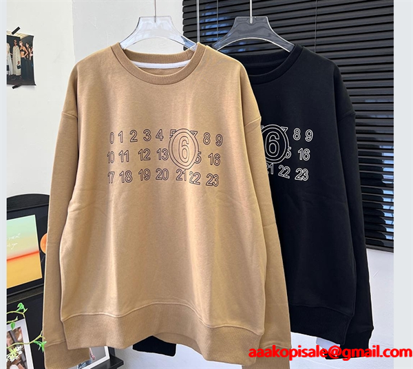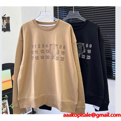Maison Margielaメゾン マルジェラスウェットコピーMM6カジュアル 数字プリント クルーネック ユニセックス ベージュ/ブラック▼メッセージ▼ | ||