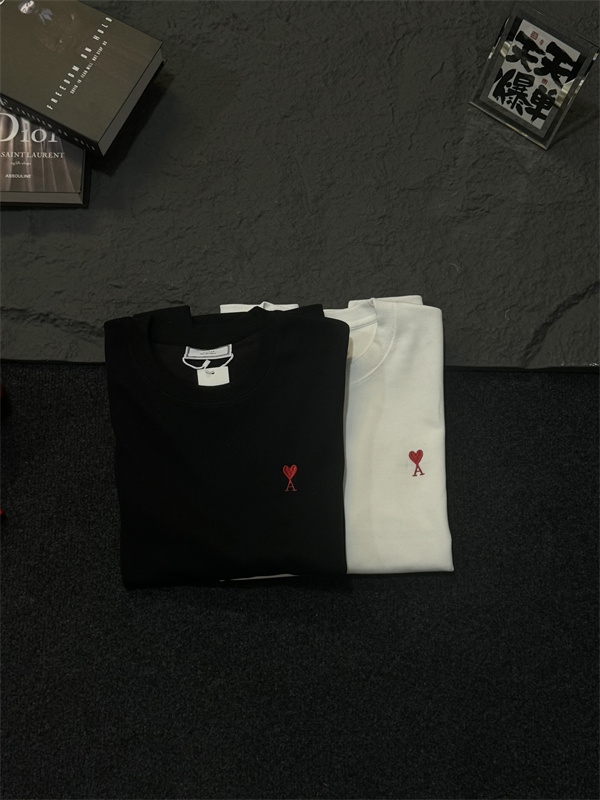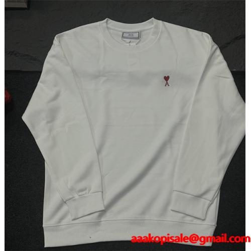 アミ パリストレーナコピーAMI PARIS ハート刺繍ロゴクルーネックシンプルデザイン秋冬最新
