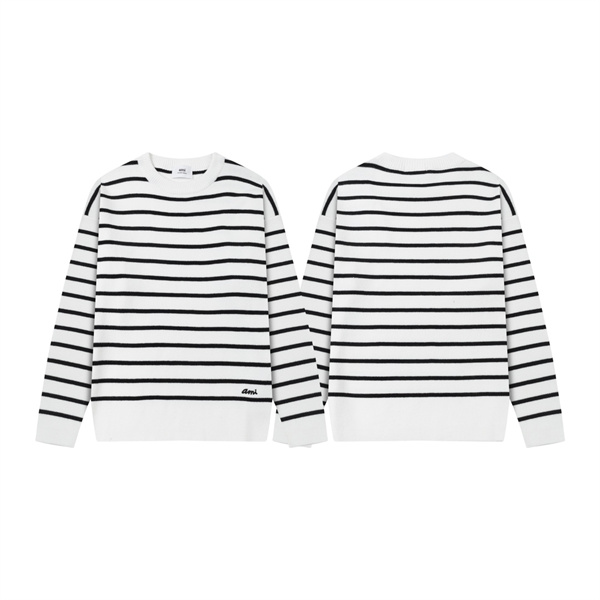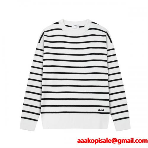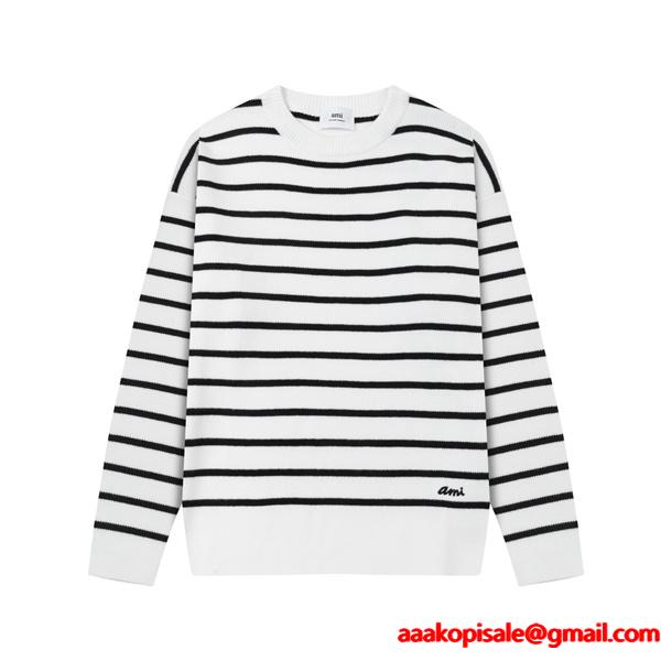 アミ パリスセーター コピー AMI PARIS メンズ レディース ニット プルオーバー クルーネック 長袖 ボーダー柄 シンプル おしゃれ カジュアル 秋冬