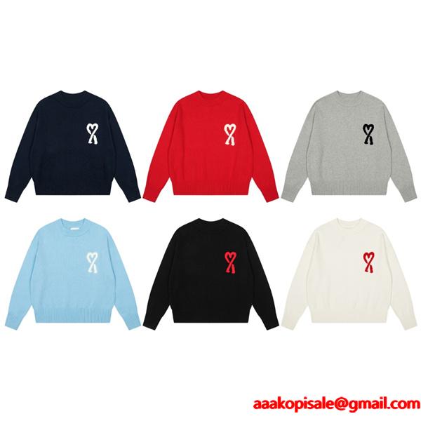 新作アミ パリスコピー AMI PARIS セーター メンズ レディース ニット プルオーバー クルーネック