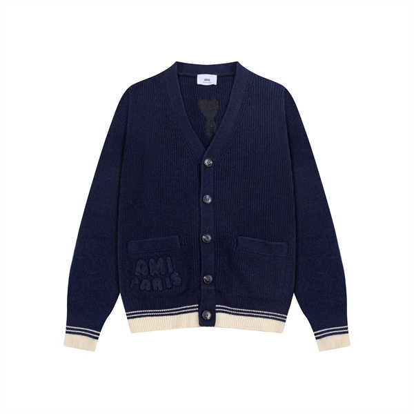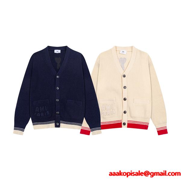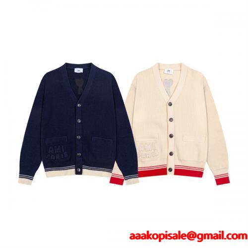 アミ パリス AMI PARISカーディガン コピーメンズ レディース ニット Vネック 長袖 羽織り ポケット付き ロゴ 刺繍