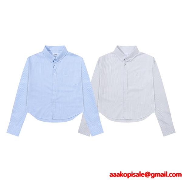 アミ パリスコピー AMI PARIS シャツ レディース 長袖 ストライプ ライトブルー 上品
