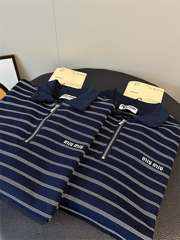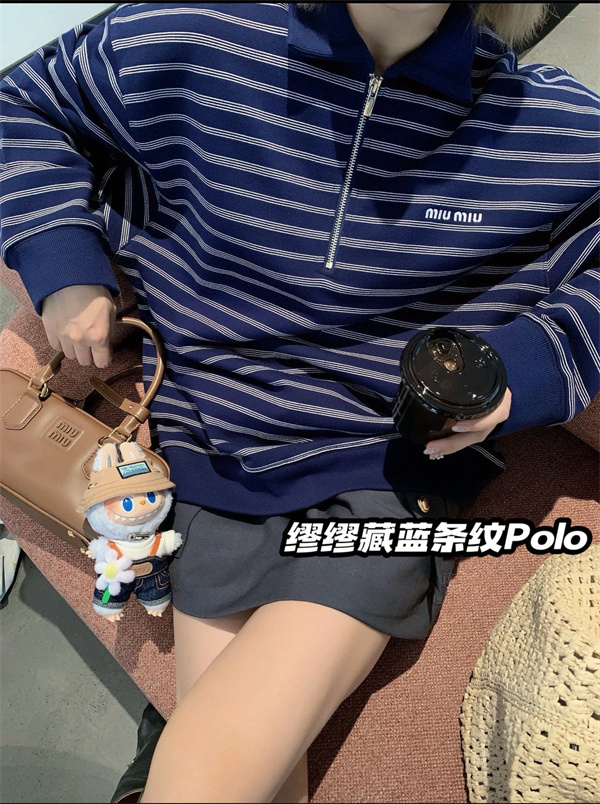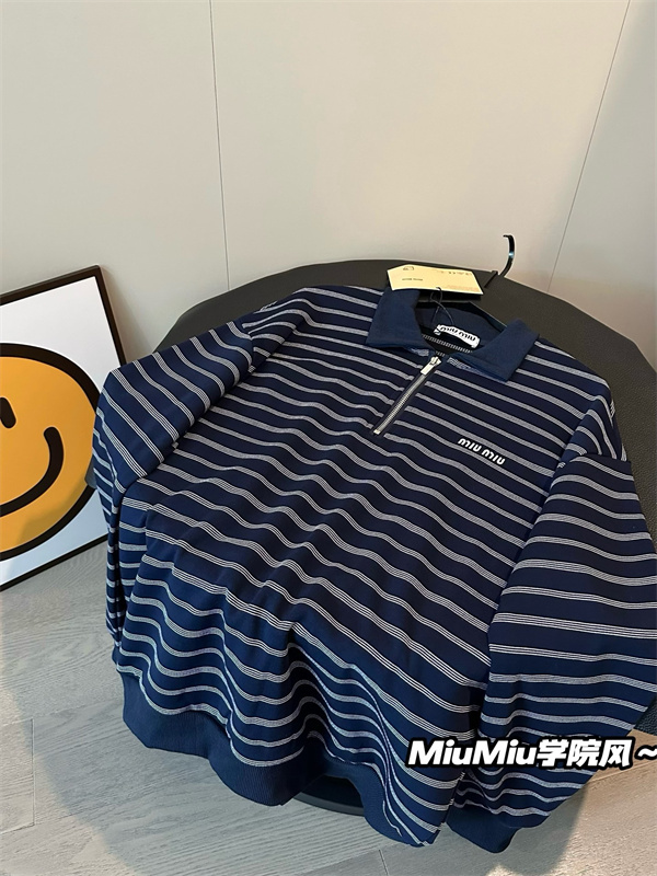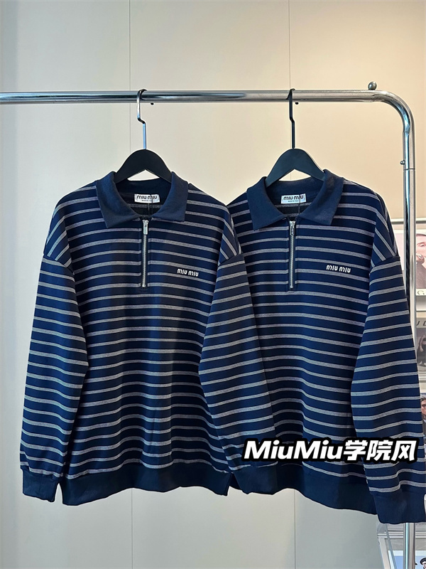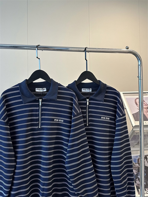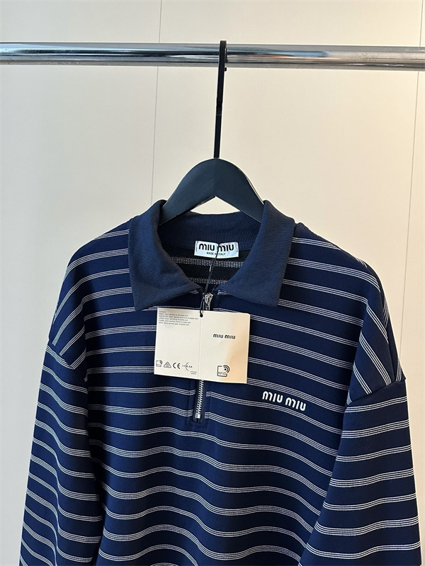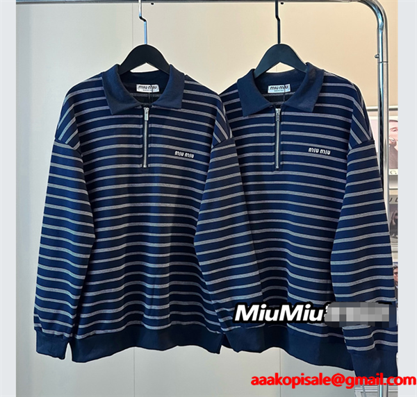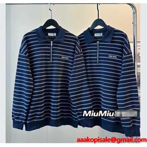 秋冬ミュウミュウコピー激安MIUMIUスウェット レディース Miu Miu ミュウミュウ ボーダー 長袖 ハーフジップ