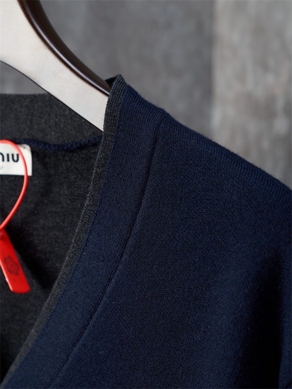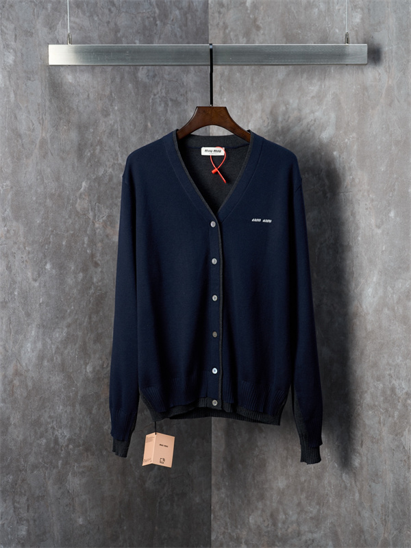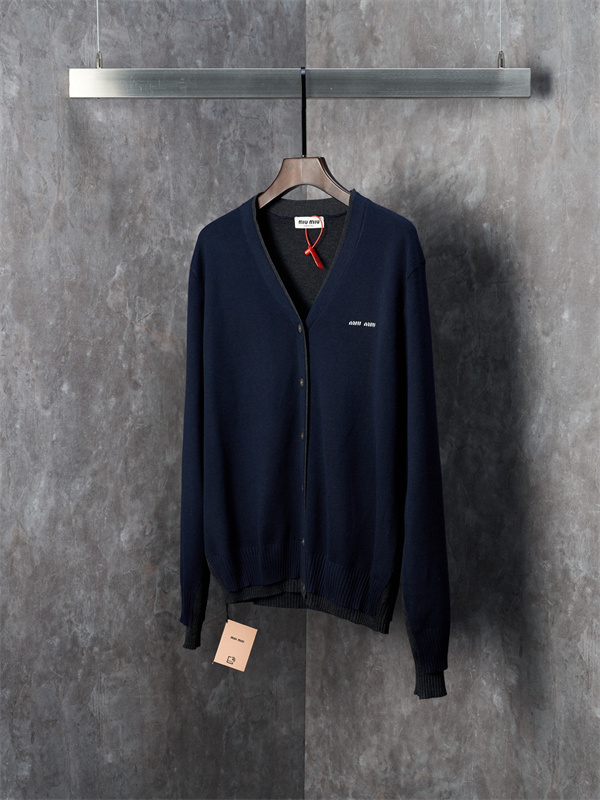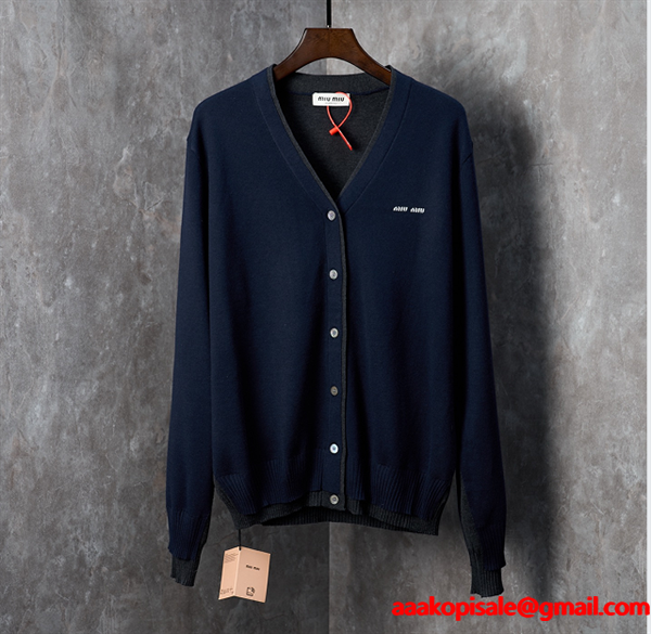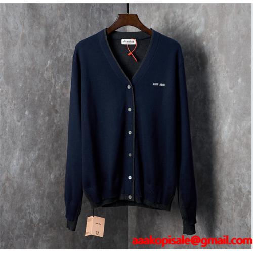 ミュウミュウカーディガンコピー Miu Miu レディース ブランドロゴ ネイビー Vネック