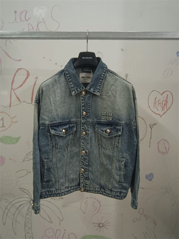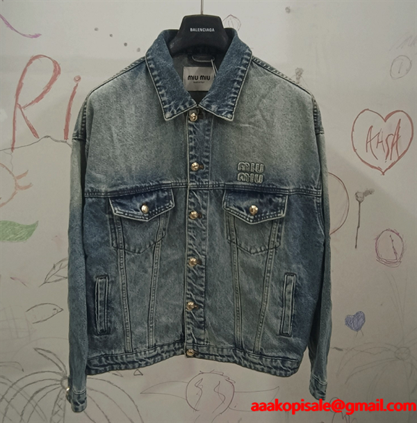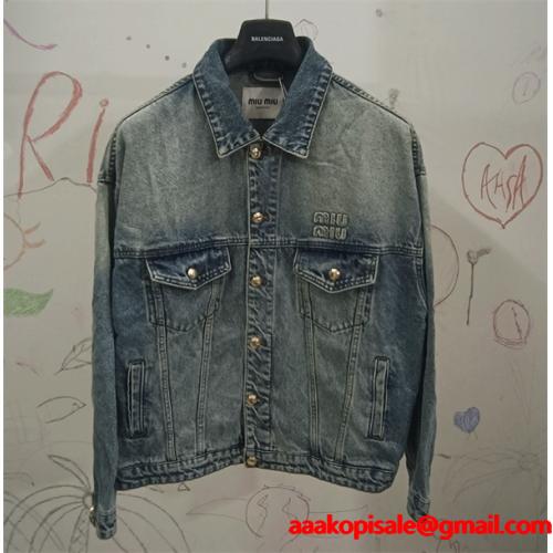 オシャレ使い勝手ミュウミュウ Miu Miu デニムジャケットコピー レディース ブランドロゴ ウォッシュ加工