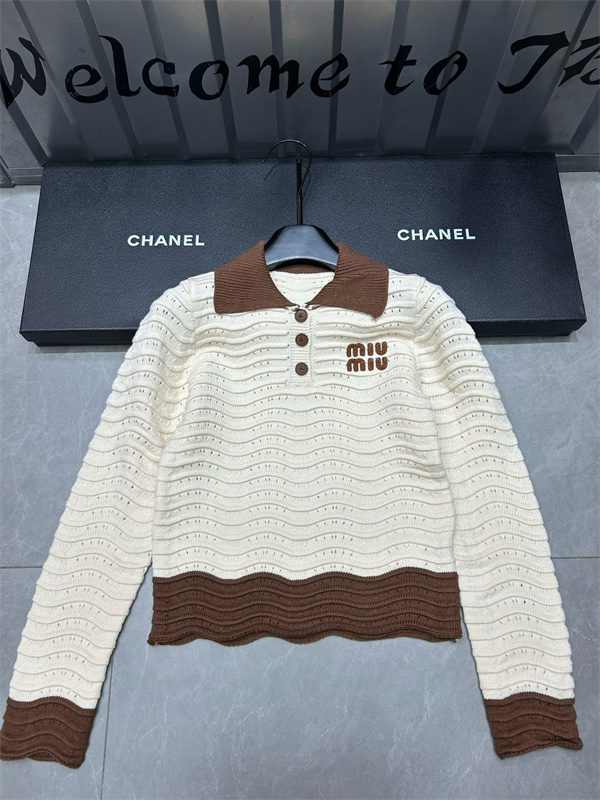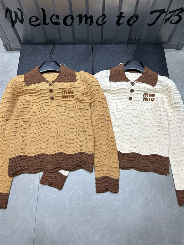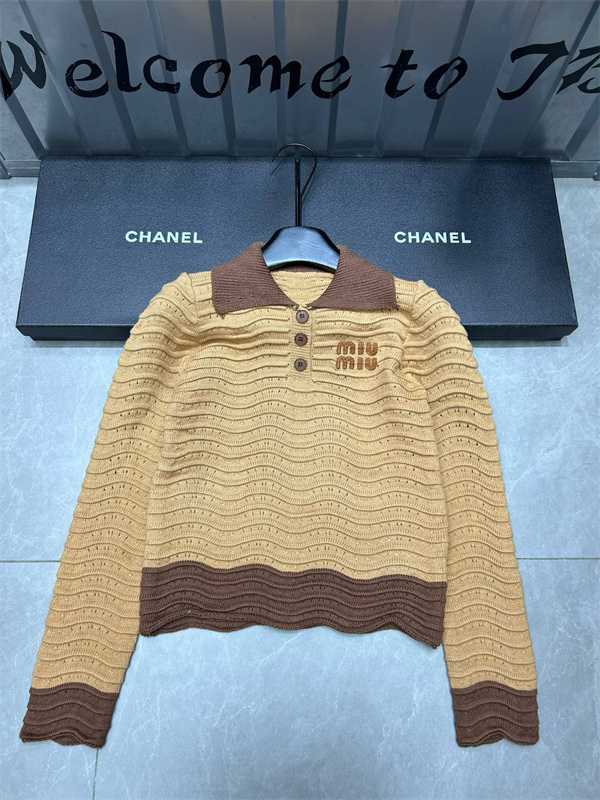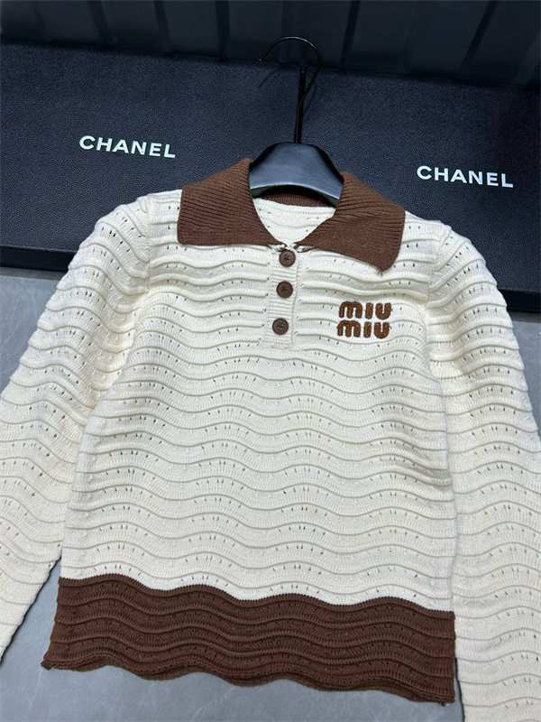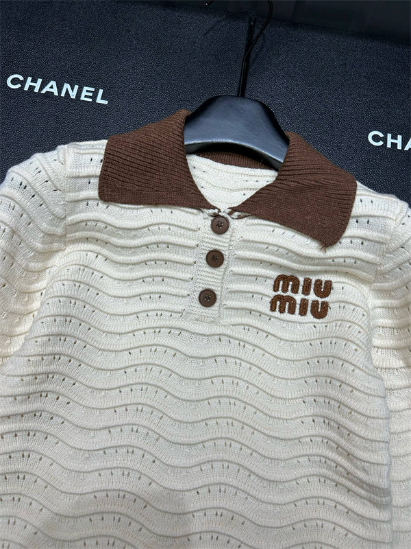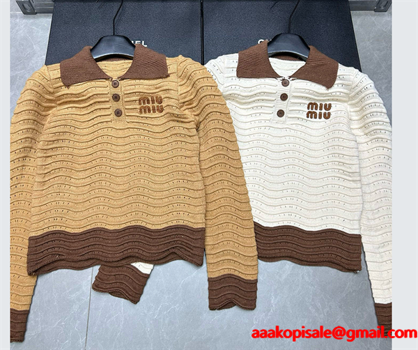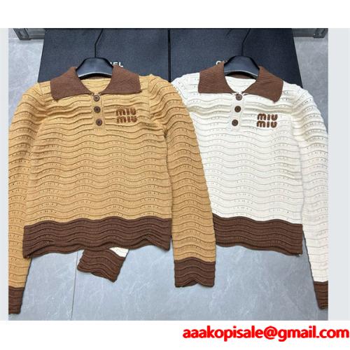 ミュウミュウ Miu Miu ニットポロシャツ コピーレディース ブランドロゴ 透かし編み