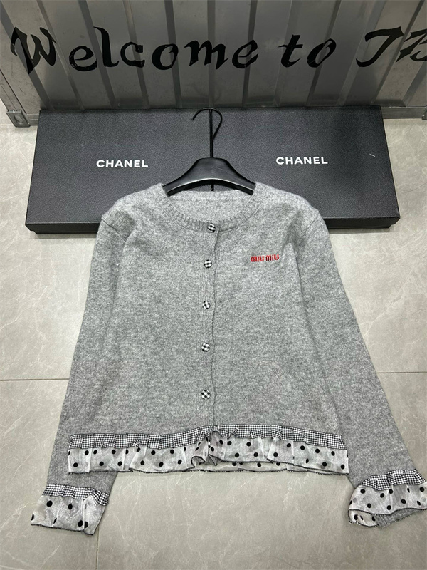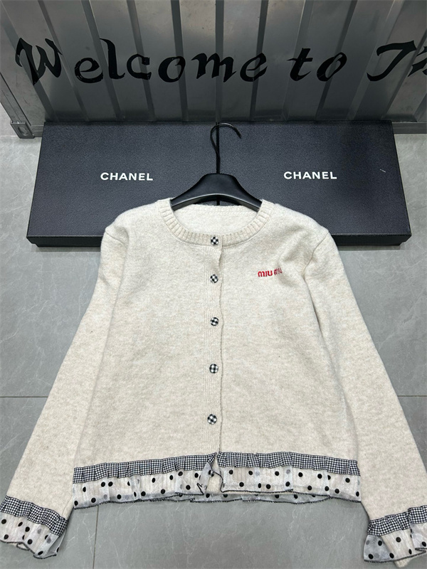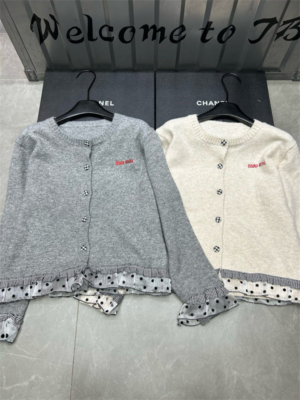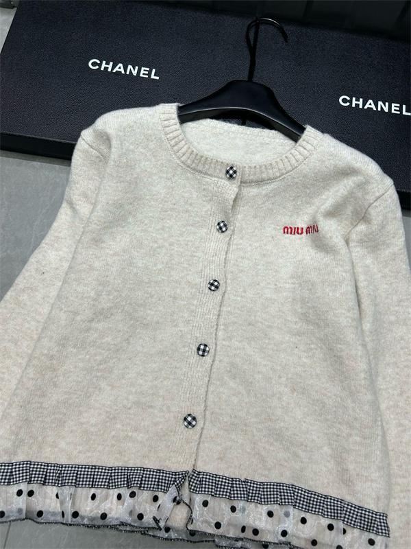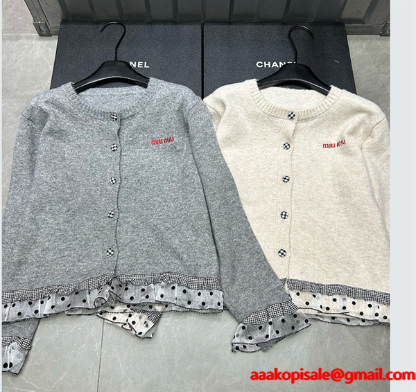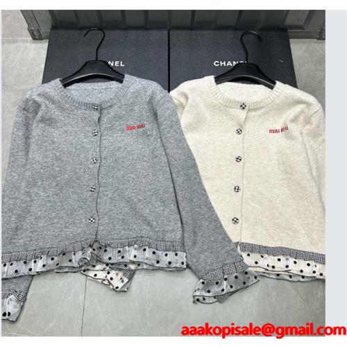 ミュウミュウ Miu Miu カーディガン コピー ロゴ刺繍 フリル ドット ギンガムチェック フェミニン