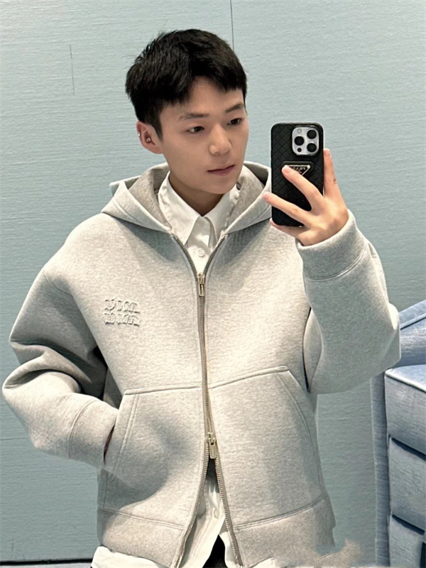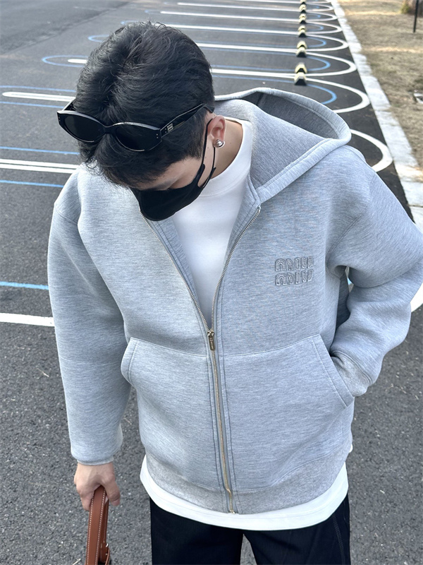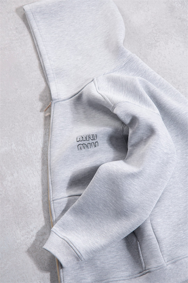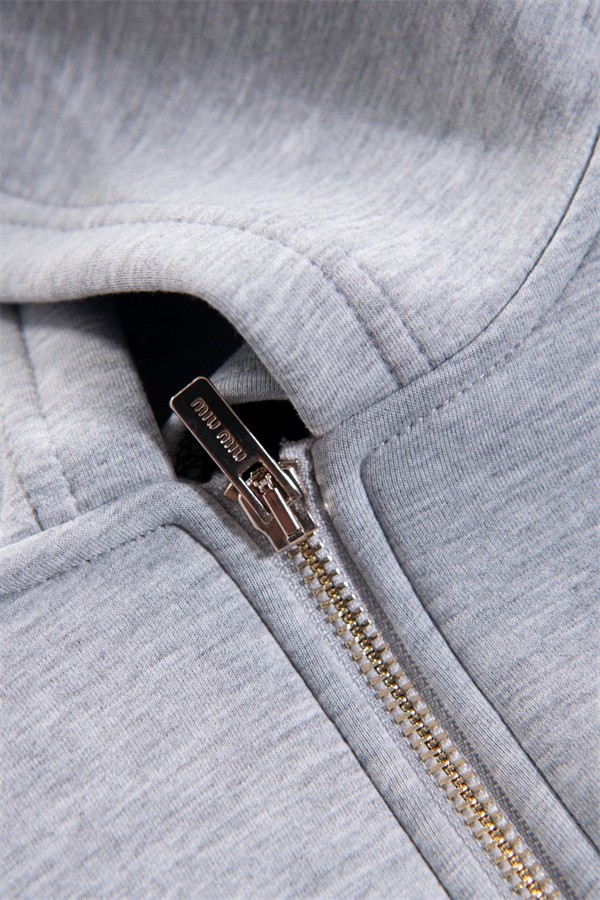 オシャレ新作MIUMIUミュウミュウジップアップコピー フーディー パーカー レディースグレー色