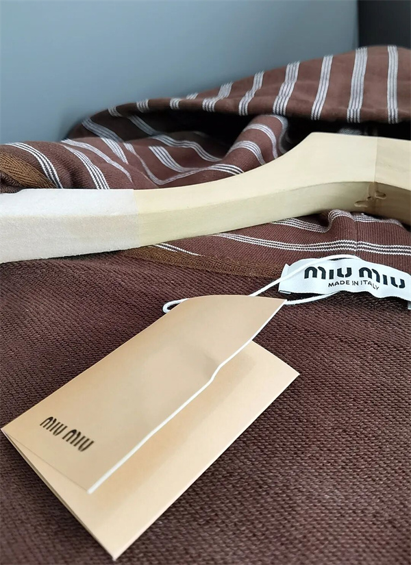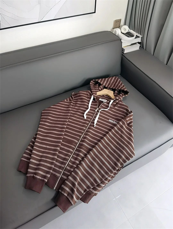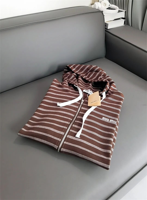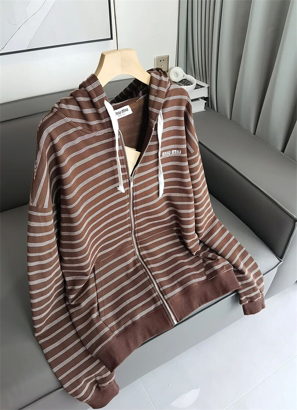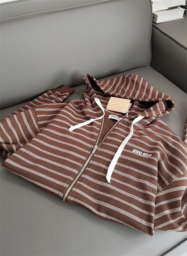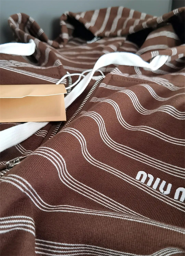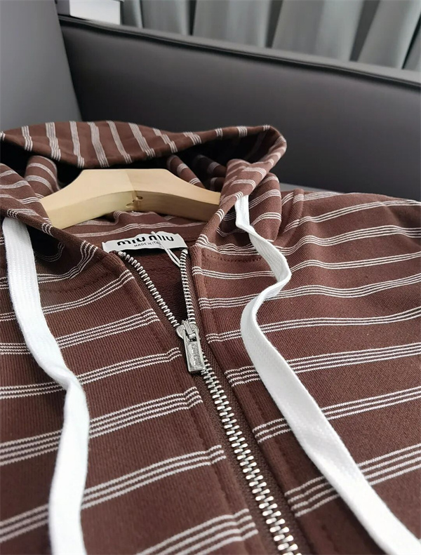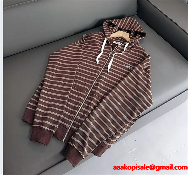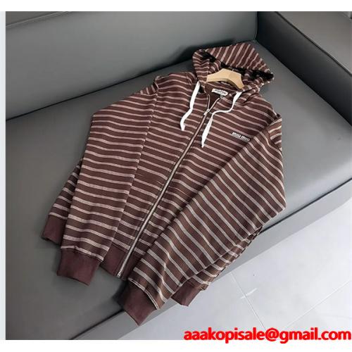 MIUMIU激安ミュウミュウ ジップアップコピー パーカー ボーダー ブラウン レディース ロゴ入り