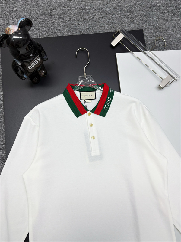 GUCCI コピー 長袖ポロシャツ クラフト プレミアム デザイン エフォートレス グッチGUCCI コピー ポロシャツは、襟元に施された赤緑のリブラインとロゴがポイントのクラフト感あるデザイン。シンプルながらもプレミアムな印象で、着るだけでエフォートレスなスタイルを実現。グッチ 偽物ながらも優良N級品で、スーパー コピー通販でも激安価格で入手可能です。