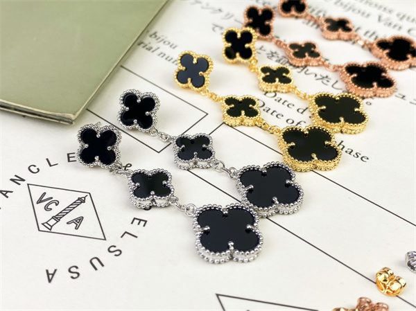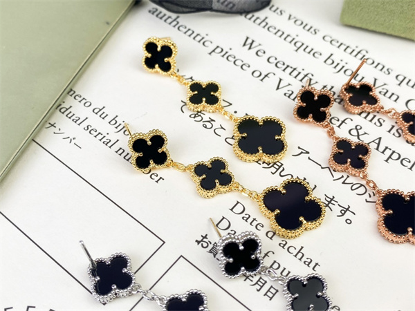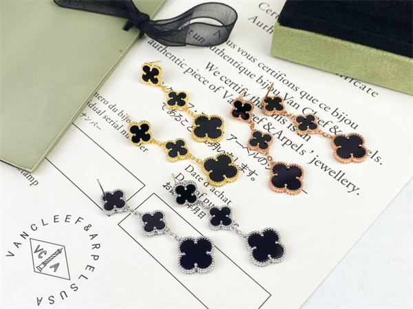van cleef & arpels ヴァンクリーフ ピアスコピー激安3色人気ランキング2025トレンド最新VCAアクセサリーヴァンクリーフ ピアスコピー幸運を象徴する四つ葉のクローバーをモチーフにしたエレガントなロングピアス。ブラックオニキス調のモチーフが上品な輝きを放ち、フェミニンで洗練された印象を与えます。3連のデザインが顔周りをすっきりと見せ、動くたびに優しく揺れて華やかさをプラス。