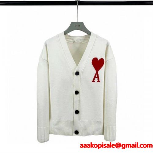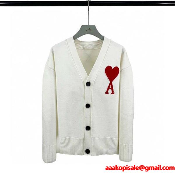 AMI PARIS スーパーコピー 上品 優良 カーディガン レッドハート ロゴ ニット アミパリス胸元のレッドハートAロゴがアクセントになった上品なデザインであるAMI PARIS コピー カーディガンは、滑らかなニット素材で高級感があり、アミパリス 偽物の中でもスーパー コピークラスの品質。通販で人気の優良N級品で、激安ながらも高品質な仕上がりが魅力です。