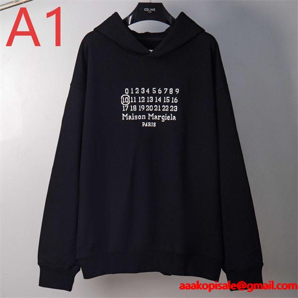 Maison Margiela スーパーコピー パーカー カレンダーロゴ シンプル モード スタイル マルジェラフロントに配置したクラシックなデザインのMaison Margiela コピー パーカーは、ブラックのベースにホワイトプリントが際立ち、モードな印象を与えます。マルジェラ 偽物 通販でも人気のスーパー コピー 高品質N級品で、優良な素材を使用し、激安ながら上品な仕上がりです。