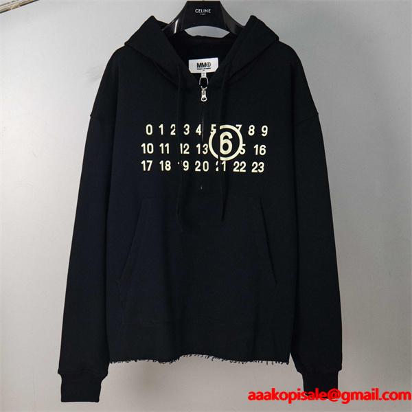 マルジェラ 偽物 パーカー ジップ付き 数字ロゴ デザイン カジュアル 売れ筋 Maison Margielaフロントの数字ロゴとジップディテールが特徴のスタイリッシュな一着であるMaison Margiela コピー パーカーは、カジュアルながらモードな雰囲気を持つデザインで、マルジェラ 偽物 通販でも人気のスーパー コピー 高品質モデル。優良素材を使用したN級品で、激安価格でも上質な存在感を放ちます。