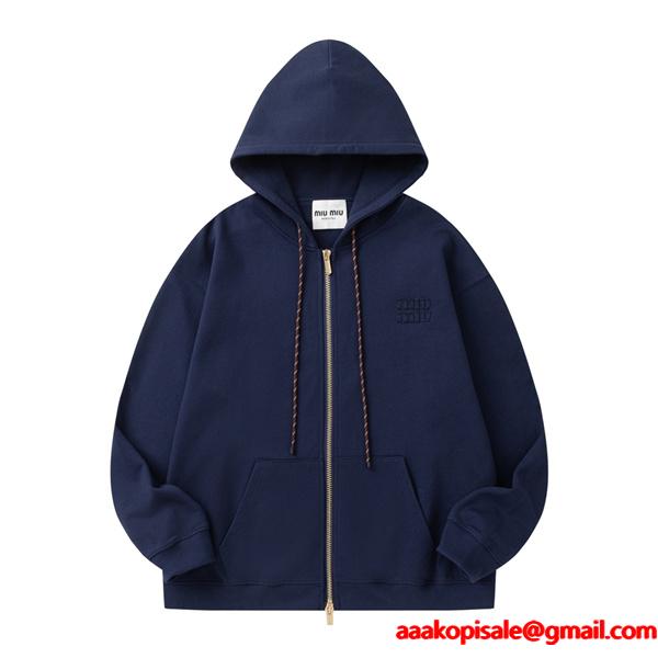 Miu Miu スーパーコピー パーカー ジップアップ ロゴ刺繍 グレー シンプル モード ミュウミュウ胸元に小さなロゴ刺繍を施したシンプルで上品なデザインのMiu Miu コピー パーカーは、柔らかなグレーカラーが特徴の高品質N級品で、日常使いからカジュアルコーデまで幅広く活躍します。ミュウミュウ 偽物 通販で人気のスーパー コピー 激安モデルで、優良素材の快適な着心地を実現しています。