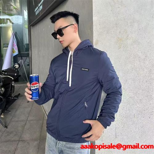 Miu Miu 偽物 ジャケット フード付き シンプル ロゴワッペン ネイビー メンズ ミュウミュウ胸元にロゴワッペンをあしらったカジュアルなデザインの高品質N級品であるMiu Miu コピー ジャケットは、軽量素材を使用したフード付きスタイルで、アクティブな印象を演出します。ミュウミュウ 偽物 通販のスーパー コピー 激安モデルで、優良素材と上質な縫製が特徴です。