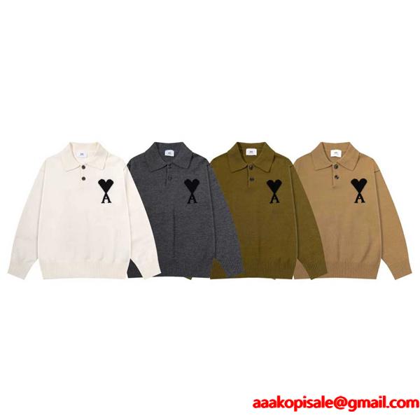 アミパリス スーパーコピー エレガント 上質 洗練 高級 ポロ ニット セーター AMI PARISネックデザインと大胆なハートロゴが特徴のAMI PARIS コピー ベストは、アミ パリス 偽物。スーパー コピー 通販で人気のN級品で、モダンかつ洗練されたカラーバリエーションが魅力。高品質な素材を使用し、激安価格ながらもファッション性の高い一枚です。