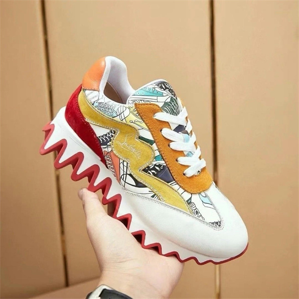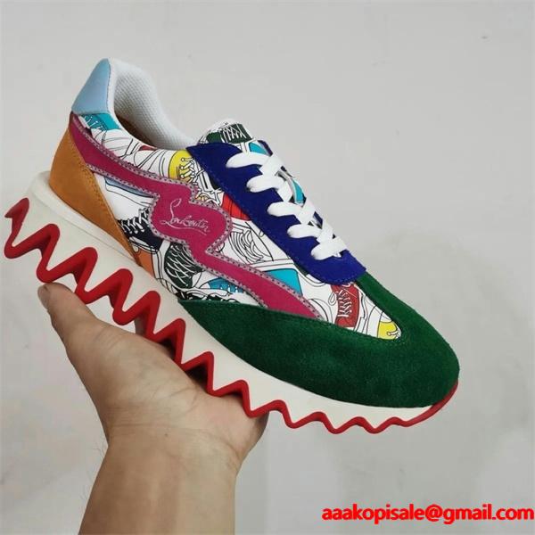 CHRISTIAN LOUBOUTIN コピー スニーカー カラフル アーティスティック ウェーブソール クリスチャンルブタンカラフルでアーティスティックなパターンが目を引くデザインのCHRISTIAN LOUBOUTIN コピー スニーカーは、波型ソールの独創的なフォルムが印象的で、遊び心とモード感を兼ね備えています。高品質スエードとキャンバス素材を組み合わせ、軽量で通気性にも優れた構造。足元に明るさと個性をプラスし、カジュアルにもストリートにもマッチ。スーパー コピー 通販で人気のN級品質で、ファッション性と履き心地を両立した一足です。