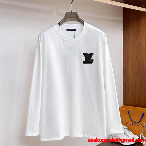 LOUIS VUITTON スーパーコピー シンプル 清潔感 ブラックロゴ 長袖 Tシャツ ルイヴィトン清潔感あふれるホワイト地にブラックロゴが映える高品質スーパーコピートップスで、ミニマルな美学と実用性を追求したこのLOUIS VUITTON コピー 長袖Tシャツは、柔らかいコットン素材で快適な着心地を実現し、N級品クラスの優良仕上げが特徴です。激安通販でも人気のルイヴィトン 偽物で、シンプルながら上品な大人のスタイルを完成させ、ビジネスシーンでも活躍します。