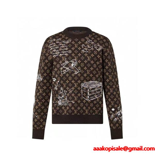 LOUIS VUITTON 偽物 クラシック 豪華 モノグラム グラフィック ニット セーター ルイヴィトンクラシックなモノグラム柄に豪華なグラフィック刺繍を施した高品質スーパーコピーニットで、ラグジュアリーな印象と快適さを両立させたこのLOUIS VUITTON コピー モノグラムセーターは、N級品の優良仕立てで、柔らかく暖かい素材感が最大の魅力です。激安通販でも人気のルイヴィトン 偽物で、エレガントなスタイルを完成させ、冬のファッションに彩りを添えます。