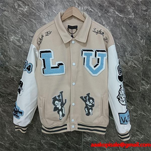 LOUIS VUITTON コピー カジュアル 華やか ベージュ レターマン ジャケット ルイヴィトン華やかで個性的なデザインが魅力の高品質スーパーコピーアウターで、独創的な発想と確かな技術が息づくこのLOUIS VUITTON コピー ベージュジャケットは、胸元や袖に施された刺繍とワッペンが遊び心をプラス。N級品クラスの優良仕上げで、激安通販でも人気のルイヴィトン 偽物としてトレンド感のあるスタイルを完成させ、ファッションリーダーを自称する方に最適です。