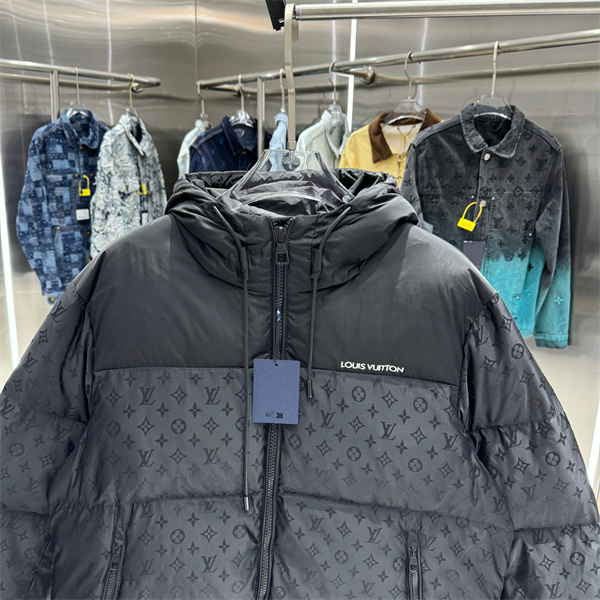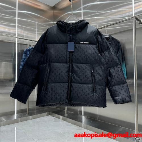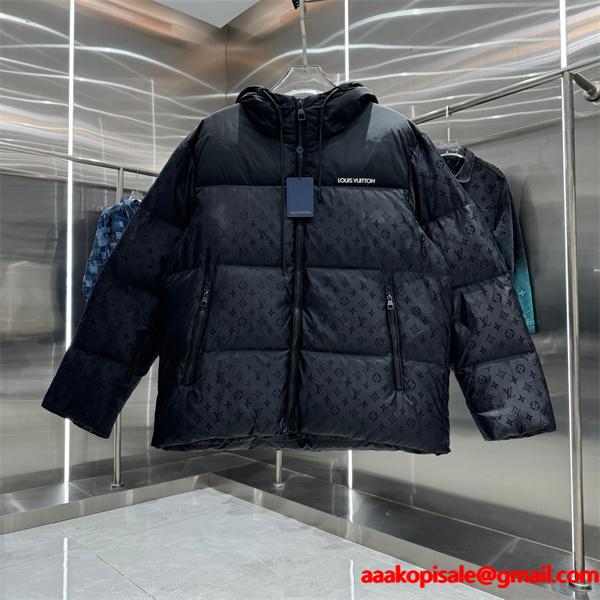 LOUIS VUITTON コピー クラシック ブラック モノグラム ダウンジャケット フード付き ルイヴィトン上質な素材と立体的なモノグラム柄が魅力の高品質スーパーコピーアウターで、機能性とスタイルを両立させたこのLOUIS VUITTON コピー ブラックダウンは、軽量ながら優れた保温性を誇り、フード付きで防寒性も抜群です。胸元のLOUIS VUITTONロゴが控えめに輝き、N級品の優良仕立てで、冬のアウターとして最適な性能とデザインを兼ね備えています。